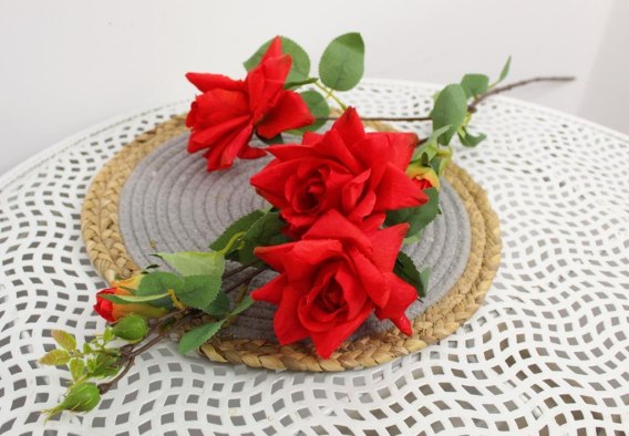 Kwiat sztuczny róża 3 kwiaty 11 cm i pąki łodyga 96 cm CZERWONA KME-116B