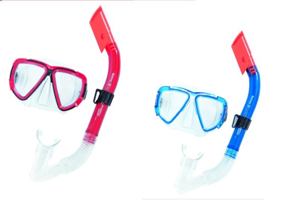Maska z rurką do nurkowania Bestway. Wyposażona została w soczewki poliwęglanowe z filtrem UV. Dzięki kołnierzowi z podwójnym uszczelnieniem maska gwarantuje pełną wodoszczelność. Miękki, wygodny ustnik ułatwia oddychanie. Technologia suchej fajki zapobiega zachłyśnięciu się wodą. Dodatkowo maska wyposażona została w regulowany podwójny pasek na głowę i w klips do przymocowania dołączonej fajki do maski. Produkt jest wolny od lateksu. Zestaw przeznaczony jest dla dorosłych oraz dzieci powyżej 14 roku życia.
