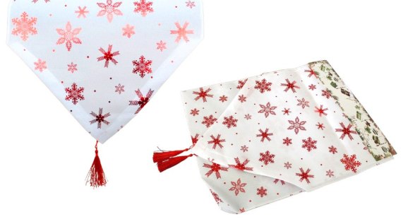 • Mata bieżnik na stół świąteczny bożonarodzeniowy CZERWONE GWIAZDY 180 x 32 cm BIAŁY SN55506
