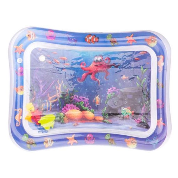 Wewnątrz maty zostały umieszczone kolorowe zwierzątka wodne, które będą przesuwać się pod wpływem ruchów dziecka.