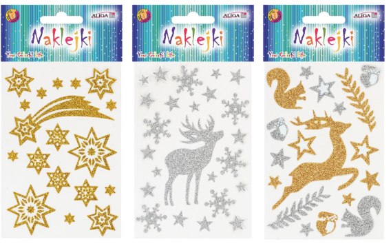 Naklejki 12szt świąteczne z brokatem Boże Narodzenie NKX-8979