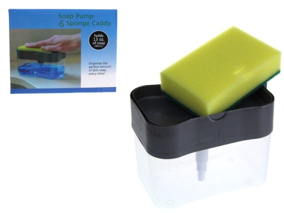 Ociekacz czarny na zmywak, gąbkę z dozownikiem do płynu 10x10x14 cm AG-153