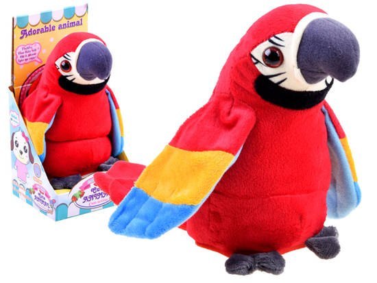 Zabawa kolorową papugą będzie zapewne mega wesoła i zabawna, zwłaszcza, że ptak przedrzeźnia barwę głosu! Papuga została zapakowana w otwarty karton i może być ciekawym prezentem.