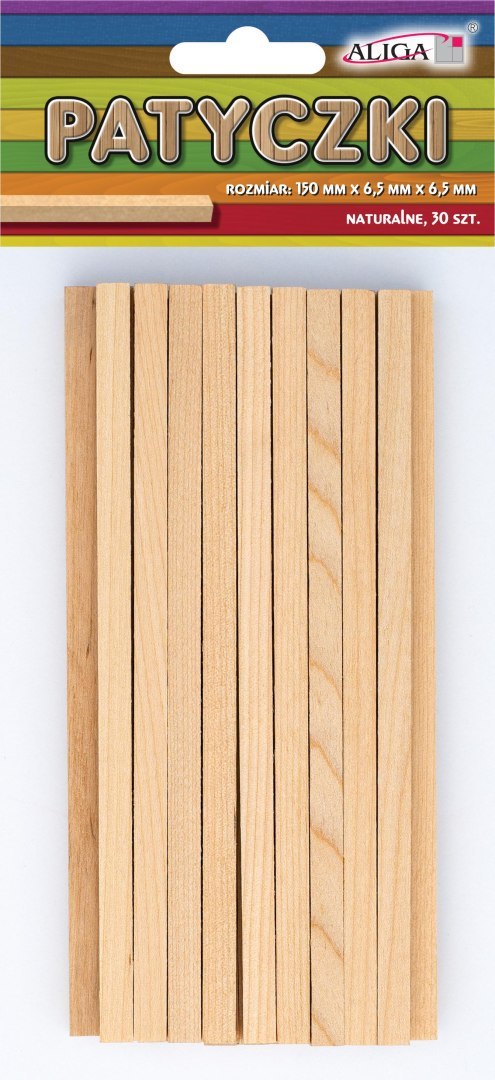 Patyczki płaskie drewniane 30szt. NATURALNE 150x6,5x6,5mm