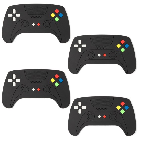 Zestaw 4 podkładek pod kubki w kształcie pada, w opakowaniu umożliwiającym personalizację.