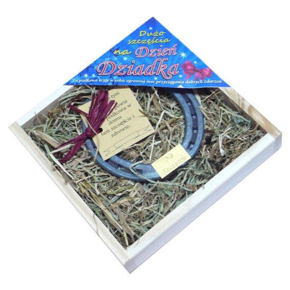 Podkowa na szczęście metalowa z siankiem dla dziadka