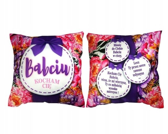 Poduszka zapakowana w folię, idealnie nadaje się jako prezent główny jak i upominek (dodatek) do prezentu.