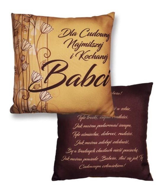 Poduszka zapakowana w folię, idealnie nadaje się jako prezent główny jak i upominek (dodatek) do prezentu.