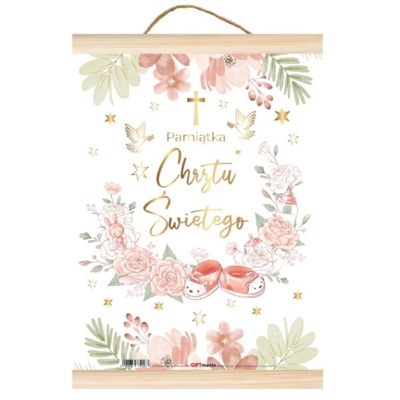 Pozłacany dyplom Pamiątka Chrztu Świętego - dziewczynka