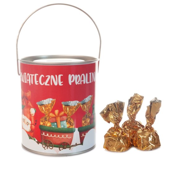 • Pralinki - skarbonka z wciskanym wieczkiem i uchwytem " Świąteczne słodkości " - czerwona - 10szt.