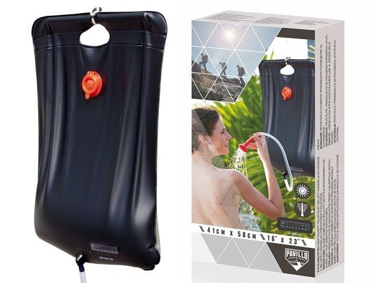 Solarny turystyczny prysznic-natrysk firmy Bestway o pojemności 20 l to praktyczne i wygodne rozwiązanie, które doskonale sprawdzi się na biwaku, kempingu lub podczas rejsu jachtem. Niezastąpiony wszędzie tam, gdzie masz ograniczony dostęp do ciepłej, bieżącej wody i prądu. Pozwala w łatwy sposób pogrzać wodę promieniami słońca nawet do temperatury 53ºC. Prysznic wyposażony jest w szczelny, zamykany kranik - rurkę wraz z sitkiem prysznicowym oraz wytrzymałą rączkę, dzięki której można go zawiesić np. na drzewie i skorzystać z ciepłej kąpieli. Dodatkowo prysznic wyposażony jest w termometr, pozwalający określić temperaturę wody wewnątrz zbiornika.