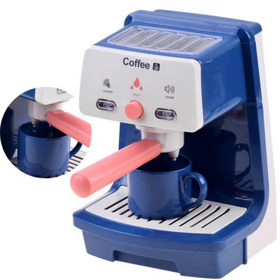 Ekspres do kawy to urządzenie którego nie może zabraknąć w domowej kuchni, biurze, restauracji, czy kawiarni. Dzieci uwielbiają obserwować i naśladować dorosłych, więc ten sprzęt przyda się w kuchni każdego malucha. Ekspres wykonany jest w całości z plastiku w przyjemnych neutralnych kolorach. Tak jak prawdziwy ekspres, posiada ociekacz oraz otwieraną górną klapę. Wystarczy wlać wodę do zbiorniczka i kilkakrotnie nacisnąć różowy przycisk znajdujący się na środku w górnym panelu ekspresu tak, aby napompować wodę. Woda zacznie przelewać się do filiżanki jak w prawdziwym ekspresie. Dodatkowo ekspres został wyposażony w efekt dźwiękowy i świetlny, który sprawia, że zabawa nim jest jeszcze bardziej realistyczna. Zabawka doskonale sprawdzi się podczas urządzania przyjęć dla lali i misiów.