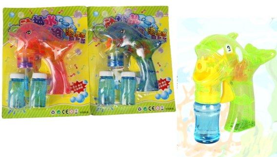 Przyrząd, urządzenie, maszynka do puszczania baniek mydlanych DELFIN, z 2 zapasami, świecący 17x16 cm BBW-141