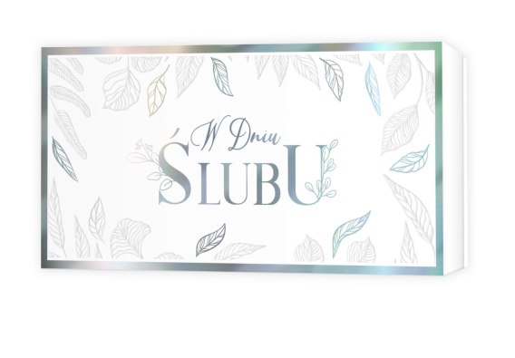 Pudełko z okazji Ślubu idealnie sprawdzi się do wręczenia małego upominku lub banknotów. Wykonane z grubej tektury i foliowanego papieru, tak by zachować trwałość. Ozdobione złoceniem i tłoczeniem, przy użyciu eleganckiego wzornictwa. W środku zawiera kartkę z życzeniami i miejscem na wpis.