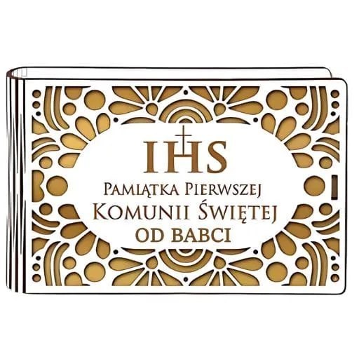 • Pudełko na pieniądze banknotówka KOMUNIA - od BABCI - Ażur 3302A-KOM3Z-B