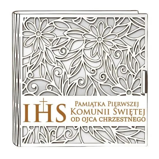 Pudełko na pieniądze kwadrat KOMUNIA - od OJCA CHRZESTNEGO - Ażur 3308A-KOM2B-OC