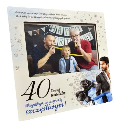 Ramka na zdjęcie dla mężczyzny  z okazji  40 urodzin. Kolorowy nadruk z życzeniami na urodziny . Ramka na zdjęcie formatu 10 x 15 cm . Pakowane w folię.