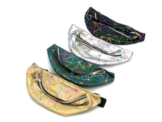 Saszetka nerka biodrówka na pas geometryczny wzór hologram