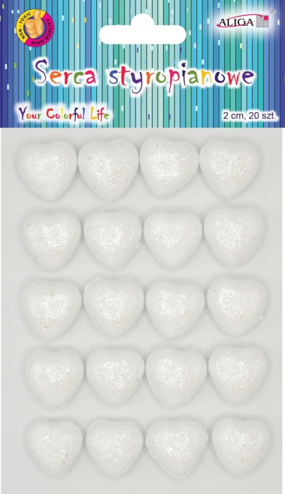 Serca styropianowe brokatowe perłowe 2cm 20szt. | BBS-01