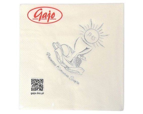 Serwetka 33x33 Komunia Św - Eucharystia biały srebrny napis SKESR-0001