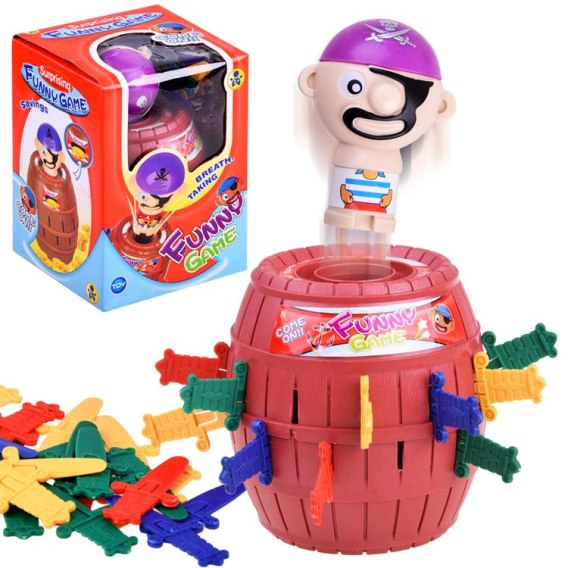 Gra polega na wkładaniu szabli do wybranych przez siebie otworów w beczce. Jeżeli zrobisz to niezręcznie, Pirat wyskoczy z beczki, a Ty... przegrywasz. Gra wymaga zręczności i buduje napięcie. Zasady są bardzo proste i gra daje dużo frajdy.
