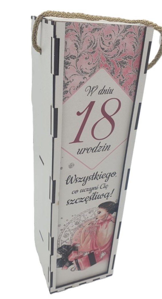 • Skrzynka pudełko 33,5 x 9,5cm na butelkę alkoholu 18 Urodziny kolor ELEGANT PANI 3311-EPI18