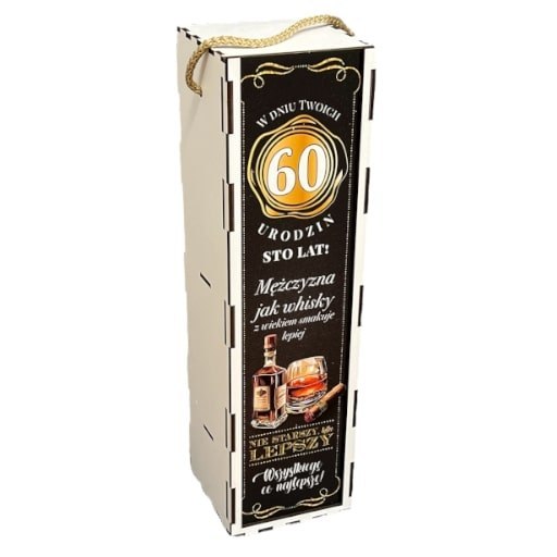 Skrzynka pudełko 33,5 x 9,5cm na butelkę alkoholu 60 Urodziny WHISKY 3311-WY60