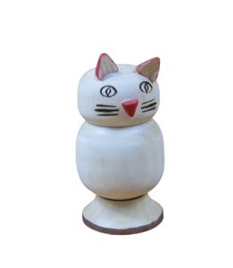 Solniczka wykonana z drewna w kształcie zwierząt, od spodu korek.