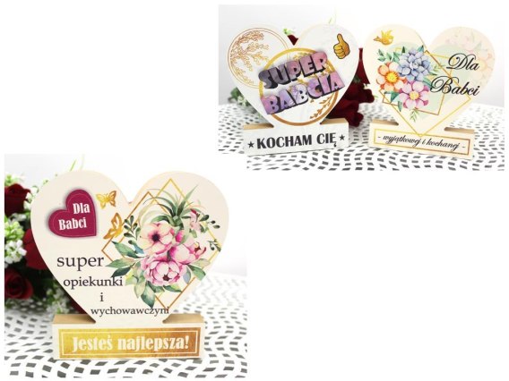 Statuetka serce stojące DLA BABCI mix wzorów i napisów 14x14x2 cm MM-ST-B23
