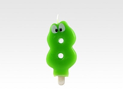• Świeczka "8" H:7,5cm ZIELONA Z OCZAMI 24 szt. 62-78
