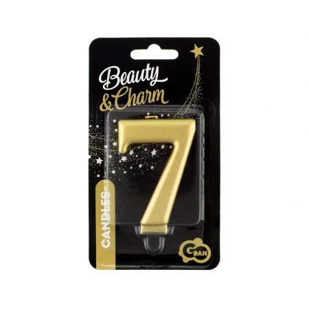 Świeczka cyferka 7 metalik złota PF-SCZ7 8 cm