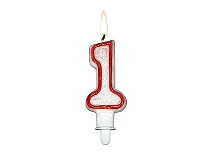 Świeczka cyfra '1'z czerwoną obwódką i brokatem 24szt 62-01