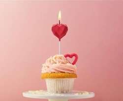 - Świeczka na piku w kształcie czerwonego, diamentowego serca.