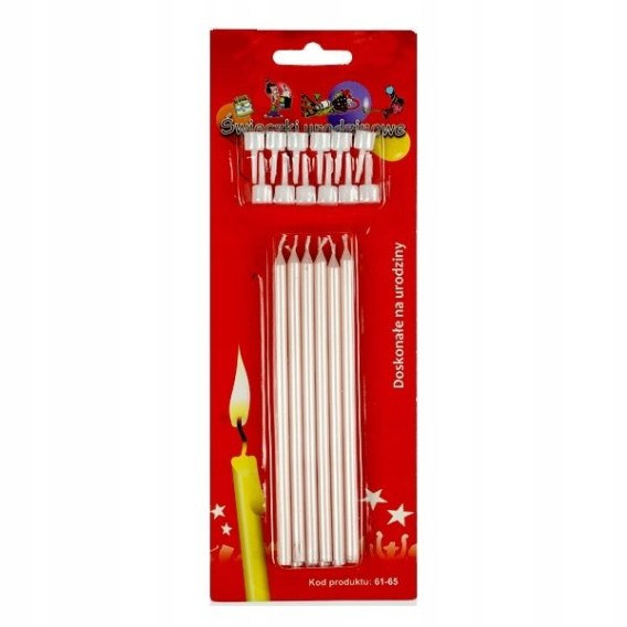 Świeczki urodzinowe 12szt. + podstawki długie RÓŻOWE | 61-65