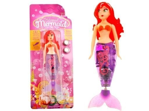 Nowa magiczna syrenka posiada ruchome rączki oraz ruchomy ogon. Ogon zaczyna świecić i ruszać się w momencie włączenia przycisku. Bawiąc się syrenką w wodzie ślicznie odbija się blask jej ogona co zapewne uatrakcyjni zabawę podczas kąpieli.