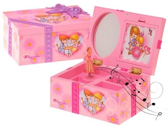 Bajeczna szkatułka na biżuterię z pozytywką, w której po otworzeniu, kręci się baletnica i płynie spokojna melodyjka.