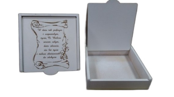 Szkatułka drewniana dla babci biała 21x21x5,5cm
