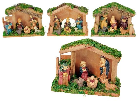 Szopka betlejemska drewniana oklejona mchem 15 x 10,5 x 6,5cm