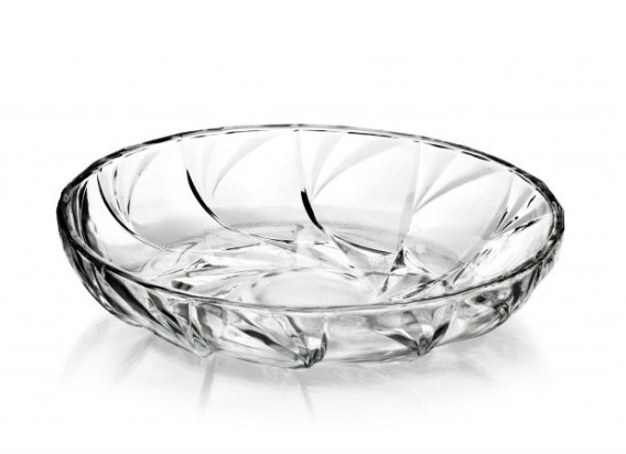 Szklany talerz może służyć jako talerz lub półmisek. Idealnie sprawdzi się dekorując stół z owocami lub ciastkami w swoim wnętrzu. Nie nadaje się do zmywarki oraz kuchenki mikrofalowej.