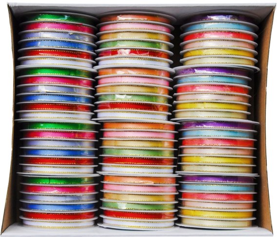 Cena 1 zestawu tasiemek ze złotą oblamówką na rolce 6 kolorów, rozmiar 6 mm x 3 m