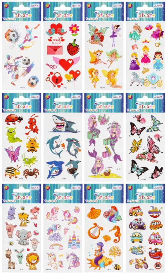 Tatuaże do ciała mix wzorów na blistrze 6,8 x 12cm TAT-4115
