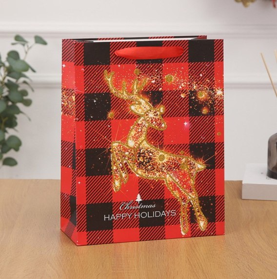 Torebka prezentowa świąteczna 42x31x12 cm CZERWONO CZARNA KRATA XVV-113C