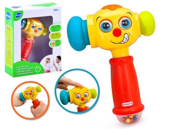 światełko na głowie młoteczka zaczyna migać podczas odtwarzania dźwięków - zachęca to dziecko do odkrywania i próbowania