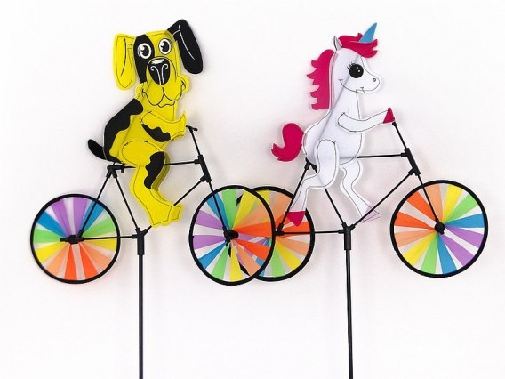 Wiatraczek zwierzątko na rowerze 50x50cm, dł.trzonka 40cm