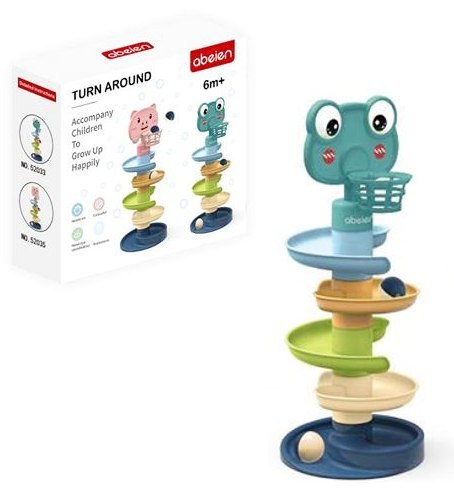Zabawna wieża z piłeczkami do zabawy dla maluszka. Dziecko chwyta jedną z kolorowych, grzechoczących piłeczek, a następnie wrzuca je na samą górę, piłeczka toczy się na sam dół wieży i wypada jednym wyjściem. Następnie dziecko może rzucić piłeczkę do kosza, który jest umieszczony na samej górze wieży. Produkt zapakowany w kartonowe opakowanie. Zabawka dla dzieci od 18 miesiąca życia.