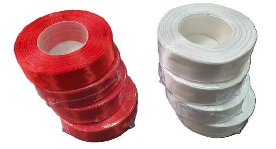 Wstążka satynowa 25 mm x 32m biała + czerwona 8 szt. AX25-01-08
