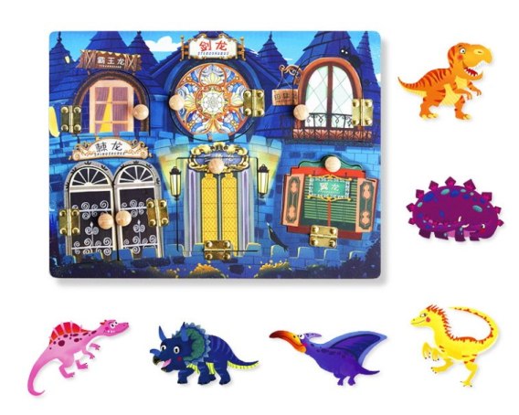 Zabawka drewniana z okienkami Dinozaury 30x22,5 cm NT6080