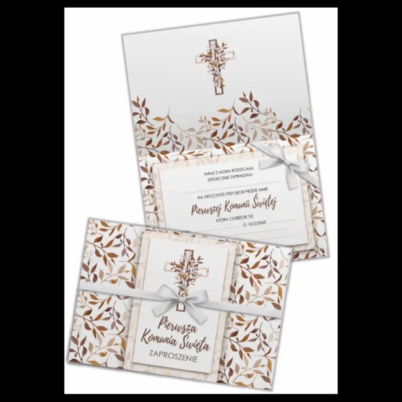 Zaproszenie 5szt. KOMUNIA LIŚCIE ZAP-7