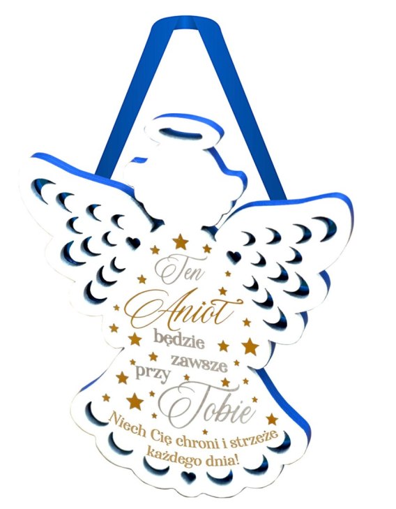 Zawieszka od serca w formie Aniołka to niezapomniany pomysł na prezent. Wykonana z solidnej płyty MDF z wyżłobionymi lustrzanymi zdobieniami i napisami z krótką sentencją