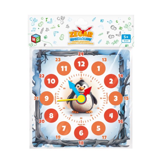 „Zegar edukacyjny - Pingwin" to wyjątkowa pomoc do nauki godzin, zgodnie z podstawą programową dla klas nauczania początkowego.